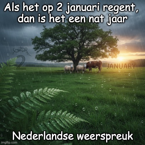 4. Als het op 2 januari regent, dan is het een nat jaar