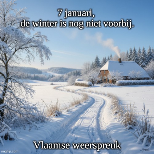 Afbeelding: Peter van Geest AI. Betekenis: Interpretatie: De spreuk geeft aan dat op deze datum de winterse omstandigheden nog steeds aanwezig zijn en dat er geen onmiddellijke verandering naar warmer weer te verwachten is. Seizoensgebondenheid: Het onderstreept dat januari vaak een koude maand is en dat de winter zijn volledige effect kan hebben, zelfs na de feestdagen. Oorsprong: Volkswijsheid: Deze spreuk is een voorbeeld van volkswijsheid die door de jaren heen is doorgegeven in de Nederlandse en Vlaamse cultuur. Het is ontstaan uit observaties van het weer en de seizoensveranderingen die mensen in hun dagelijks leven ervaren. Traditie: Veel van deze weerspreuken zijn ontstaan in agrarische gemeenschappen, waar kennis van het weer cruciaal was voor het plannen van agrarische activiteiten en het zorgen voor gewassen en dieren. Auteur: Anoniem: Zoals met veel weerspreuken, heeft deze geen specifieke auteur. Het is het resultaat van collectieve ervaringen en kennis die door generaties heen zijn doorgegeven. Culturele Context: De spreuk weerspiegelt de traditionele kennis over het weer en de seizoenen in de Lage Landen, waar mensen hun leven vaak afstemden op de natuurlijke cycli. Conclusie: De spreuk benadrukt de aanhoudende winterse omstandigheden en de verwachting dat de winter nog enige tijd zal aanhouden. Het is een anonieme uitspraak die zijn oorsprong vindt in de volkscultuur en die de relatie tussen mensen en hun omgeving weerspiegelt.