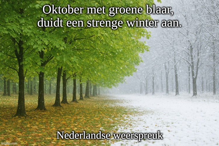 3. Oktober met groene blaar, duidt een strenge winter aan.