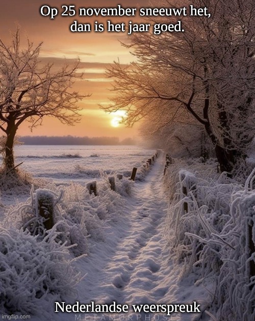 14. Op 25 november sneeuwt het, dan is het jaar goed.