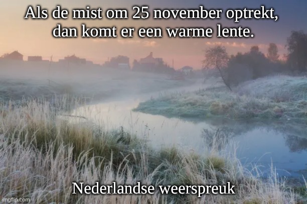 15. Als de mist om 25 november optrekt, dan komt er een warme lente.