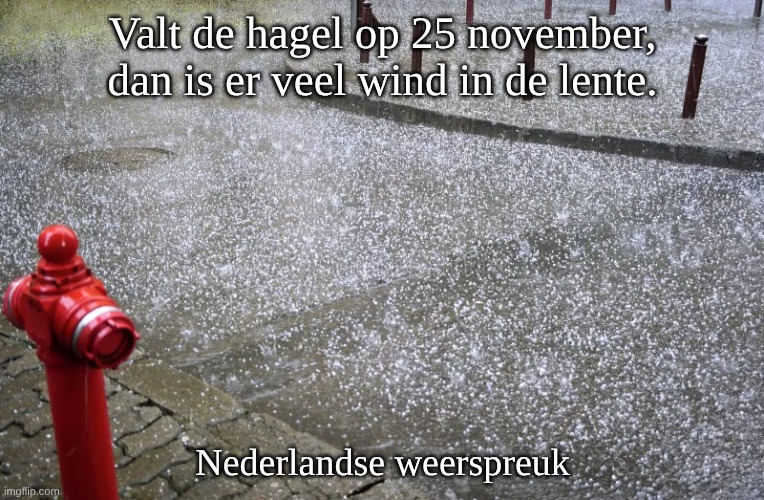 16. Valt de hagel op 25 november, dan is er veel wind in de lente.