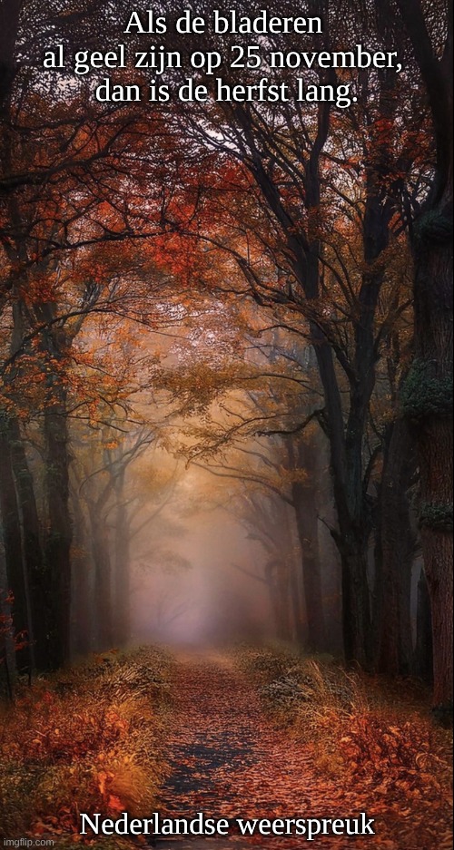 19. Als de bladeren al geel zijn op 25 november, dan is de herfst lang.
