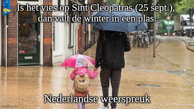 3. Is het vies op Sint Cleopatras ( 25 sept.), dan valt de winter in een plas.